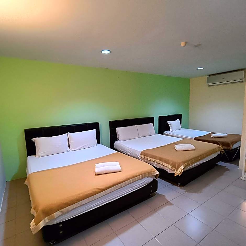The family room features air conditioning, a seating area, as well as a private bathroom boasting a walk-in shower and a bidet. The family room offers a tiled floor and a quiet street view. The unit has 2 beds.